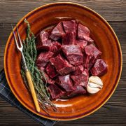 Un délicieux civet de chevreuil cuit en sauce, un plat idéal pour l'automne. 1 kg